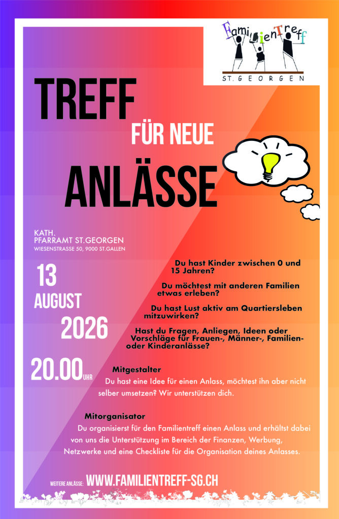 Kontakt: Nici Angehrn, 071 290 02 74, nici.angehrn@familientreff-sg.ch
